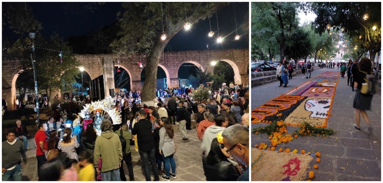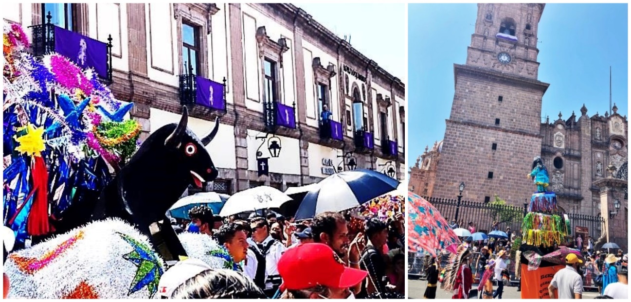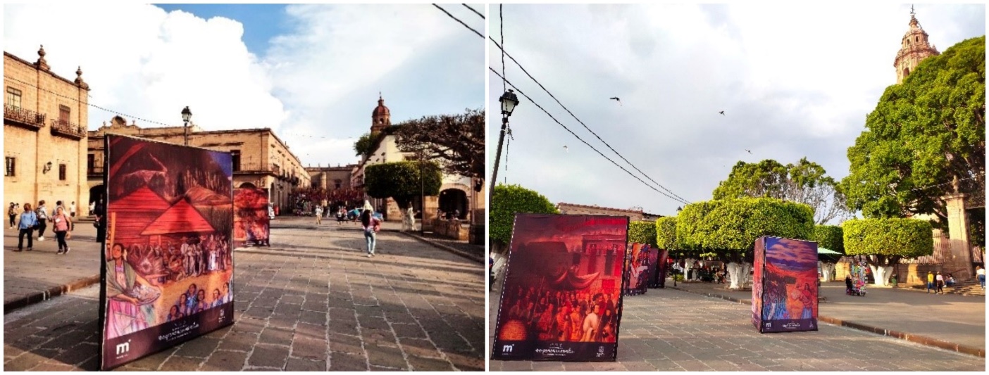 Véanse por ejemplo los casos que se identifican como Patrimonio Cultural Inmaterial, mismos que involucran tanto a la cultura objetivada (indumentaria, monumentos, bebidas y alimentos, objetos festivos y de culto, símbolos religiosos, y danzas), como también la cultura interiorizada (ideología, mentalidades, imaginarios y representaciones simbólica, actitudes y creencias (Giménez, 2007, p. 44). En tales casos, pueden citarse ejemplos como los que se muestran en las imágenes siguientes: en la Figura 1se trata de la fiesta de carnaval “El Torito de petate”, propia de Morelia; la Figura 2, por su parte, corresponde a una procesión de las fiestas de Pascua, y los Imaginarios de vocación religiosa de la ciudad. La persistencia de los Imaginarios de una ciudad novohispana puede identificarse en la Figuras 3. Otro Imaginario vigente es el de la Fiesta de las Ánimas, o Día de Difuntos, como muestran la figura 4. Además, la Figura 5 exponen aspectos de los Imaginarios sobre la comida tradicional, y sobre personajes universitarios y de la gesta independentista de inicios del Siglo XIX.