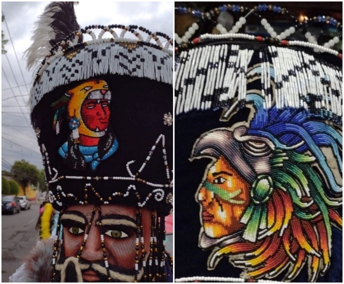 Fotografía de Diana Elena Barcelata Eguiarte (2022).Caballeros jaguar bordados en el sombrero de integrantes de la comparsa “Un Brinco de Fe.”
