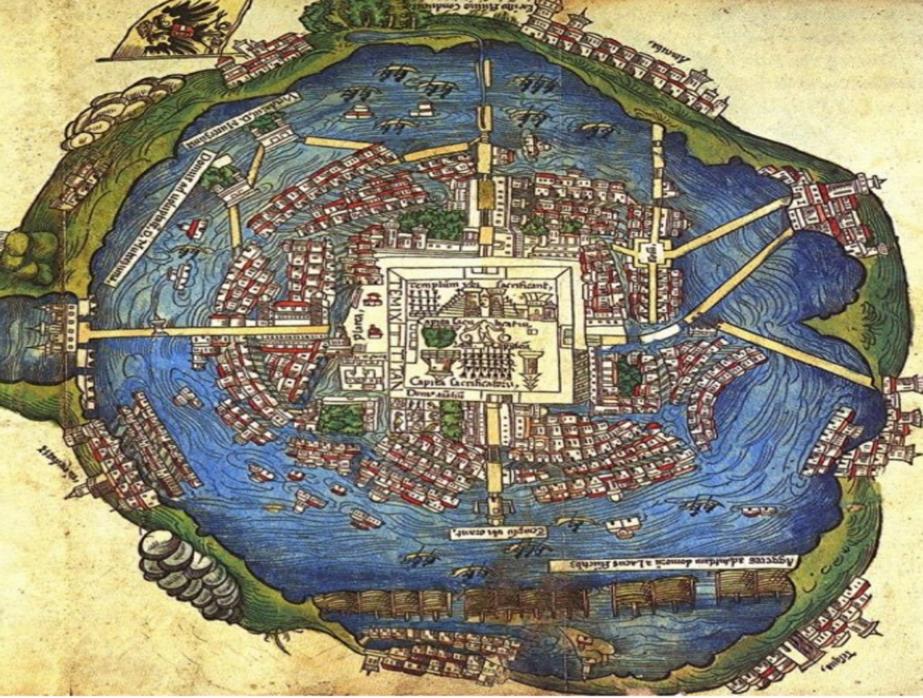 Cuando los españoles llegaron al Nuevo Mundo y remontaron la Sierra Nevada tuvieron la suerte de contemplar una ciudad construida en medio de una laguna, comunicada con tierra firme mediante avenidas y puentes, acueductos y acequias que permitían abastecer de alimento y agua fresca a la población (Figura 1). Lo que vieron ese día no podía compararse con las capitales que conocían, y tampoco entenderse con los parámetros europeos. Tanto en Tenochtitlán como en otros lugares de la cuenca de México existía un recinto ceremonial con grandes basamentos piramidales rodeado de palacios, chinampas y casas sencillas (Boone 1987). Poco después de su arribo, la demolición de los templos y falta de interés en la cultura indígena condenaron al olvido el pasado, quedando las ruinas en manos de nuevas generaciones que dieron vida a la ciudad de México.