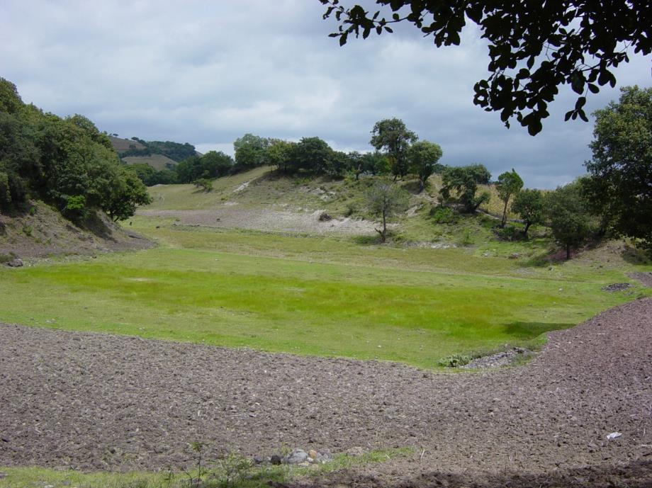 El depósito de agua que abastecía a los mercaderes y secciones bajas de la ciudad se halla en una hondonada donde confluye la lluvia que cae en los sectores altos (Figura 7). Su forma recortada sugiere que fue objeto de constante mantenimiento, ya que la población y los comerciantes que arribaban al sitio durante la sequía no tenían otra fuente de abastecimiento (Fahmel, 2011). A la fecha el depósito se ha sedimentado y tornado en pantanal, aunque durante la época de lluvias sigue captando tres mil metros cúbicos de agua o más.