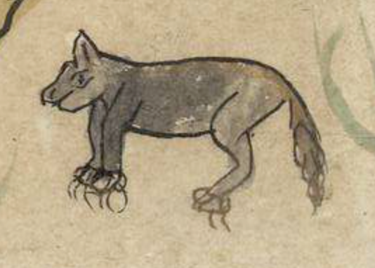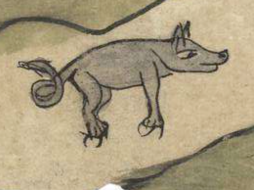 En el ángulo inferior izquierdo del mapa aparece nuevamente un cánido (Figura 10), el cual, en este caso, por la cercanía a los altos macizos montañosos de los municipios de Ocampo y San Felipe (la sierra de Lobos y otras) podría sugerir a un lobo mexicano, Canis lupus baileyi (Naturalista 2022i), presente en el sur de San Luis Potosí hasta la década de los cincuentas del siglo pasado (Penyak, 2007, p. 79).