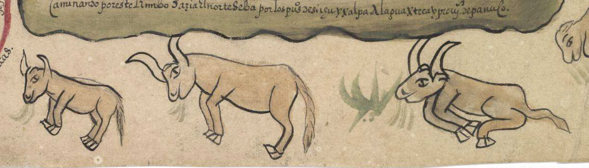 Con excepción de un posible conejo dibujado en la parte media a la izquierda del cuadrante B, la representación de elementos de la fauna silvestre, en este caso todos mamíferos, se da a lo largo del margen inferior del mapa. La representación de nopales en la parte lateral izquierda del cuadrante C, así como la predominancia de áreas montañosas con escasas evidencias de poblamiento en el cuadrante D (actualmente en los municipios de Ocampo y San Felipe), se asocia con la mayor presencia de fauna silvestre. Todos los elementos sugeridos tienen una clara relevancia como recursos o por su influencia en los modos de vida de los pobladores originales de la región. No obstante, al igual que la notable ausencia de las ovejas, no aparecen en el códice otras especies que mantienen una alta importancia en estos mismos sentidos, como la rata magueyera (Neotomaleucodon . N. mexicana; Sánchez, 2014), la codorniz cotui norteña (Colinusvirginianus), la codorniz escamosa (Callipepla squamosa) (Howell & Webb, 1995) y las varias especies de serpientes de cascabel (Crotalus spp.), animales muy abundantes en las nopaleras.