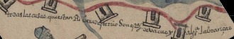 1. Puerto de Nieto (3B): 100º 32’ 16.22” W, 20º 53’ 33.32” N, 2,120 m. A partir de este punto parece organizarse el resto del mapa, ya que presenta la entrada a la región por el camino desde México; de hecho, muestra la bifurcación del camino de México a Zacatecas y de México a San Miguel. Además, conforme a la tradición mesoamericana, ubica en ese punto el oriente mediante el icono de un sol cefalomorfo. Finalmente, este punto coincide con la línea media central del documento, que se sobrepone a un pliegue del soporte material.