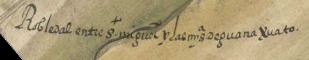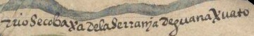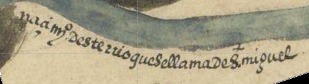 5. Confluencia de los límites de los municipios de Guanajuato, León y San Felipe (31C): 101º 23’ 12.47” W, 21º 08’ 18.16” N, 2,140 m. Se señala el extremo sureste del “Potrero de Jasso” (29D). Hacia el NO aparece la glosa (31D) del nacimiento del río San Miguel (río Laja), que es el eje central del documento. La cuenca del río Laja es una de las mayores del sistema Lerma-Chapala, considerado económicamente el más importante del país (Aparicio, 2001).