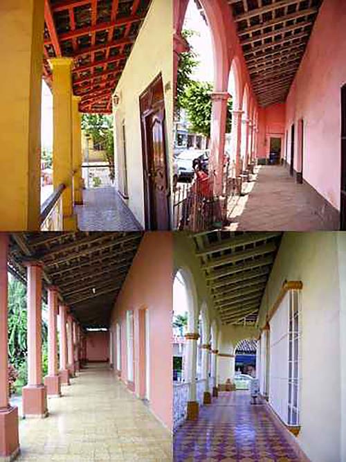 Los portales son techados con estructuras de madera, alfajíllas y teja de barro acanalada. En ocasiones la cubierta de los portales continúa como cubierta de la vivienda, pero con una ligera variacion en su inclinacion.