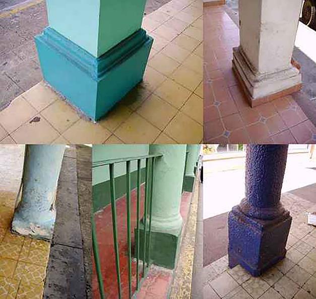 La distancia entre las columnas es similar en todos los inmuebles (Figura 7). En un 90% de los casos, es de tres metros de eje a eje. La proporción del espacio intercolumnial con relación a la altura del portal es 1:1. En algunos casos puede llegar a ser hasta 1:1.5.