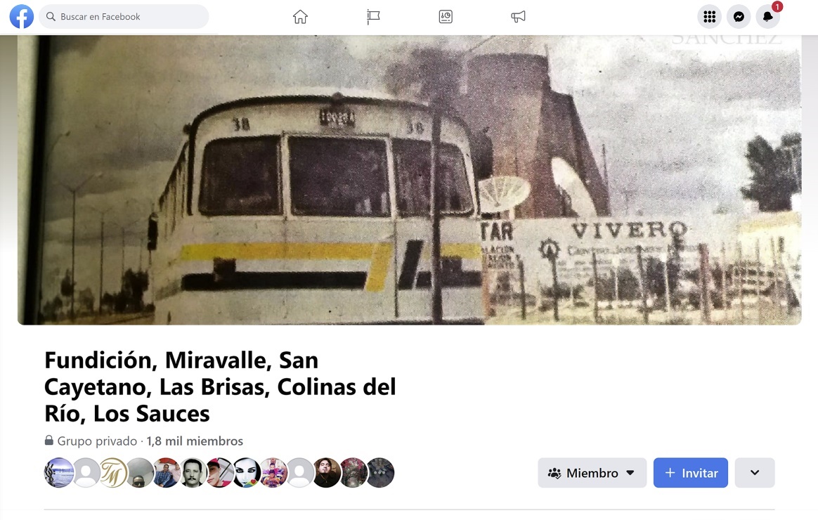 Es así como se llegó a la comunidad virtual llamada Fundición, Miravalle, San Cayetano, Colinas del Río, Los Sauces. Este grupo de la red social Facebook, está conformado por personas que habitan o habitaron la Zona Fundición, y que buscan hacer nuevos lazos con vecinos con fines culturales, comerciales y recreacionales, o que han logrado reencontrarse con antiguos compañeros de infancia, trabajo, barrio o escuela (Figura 9).