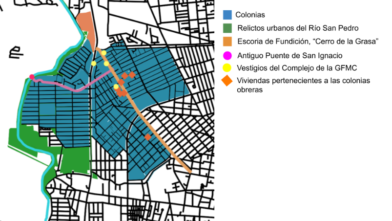 Para hablar de la conformación urbana en esta zona, es indispensable regresar a su origen: el Río San Pedro, su uso y contaminación. Previo al comienzo de las funciones de la Gran Fundición Central Mexicana, uno de los primeros momentos en los que se muestra a una población preocupada por la gestión de recursos y las afectaciones que esta industria traería, fue el hacer del dominio público las concesiones de agua del río San Pedro, que sería destinada al enfriamiento de sus hornos; esto provocó una gran indignación en el sector de la población que había experimentado o sabía de los estragos que la industria La Metalúrgica –empresa metalúrgicas precedió a la Gran Fundición Central Mexicana en el Estado de Aguascalientes– había causado, al grado de casi extinguirlo (Martínez Delgado, 2017).