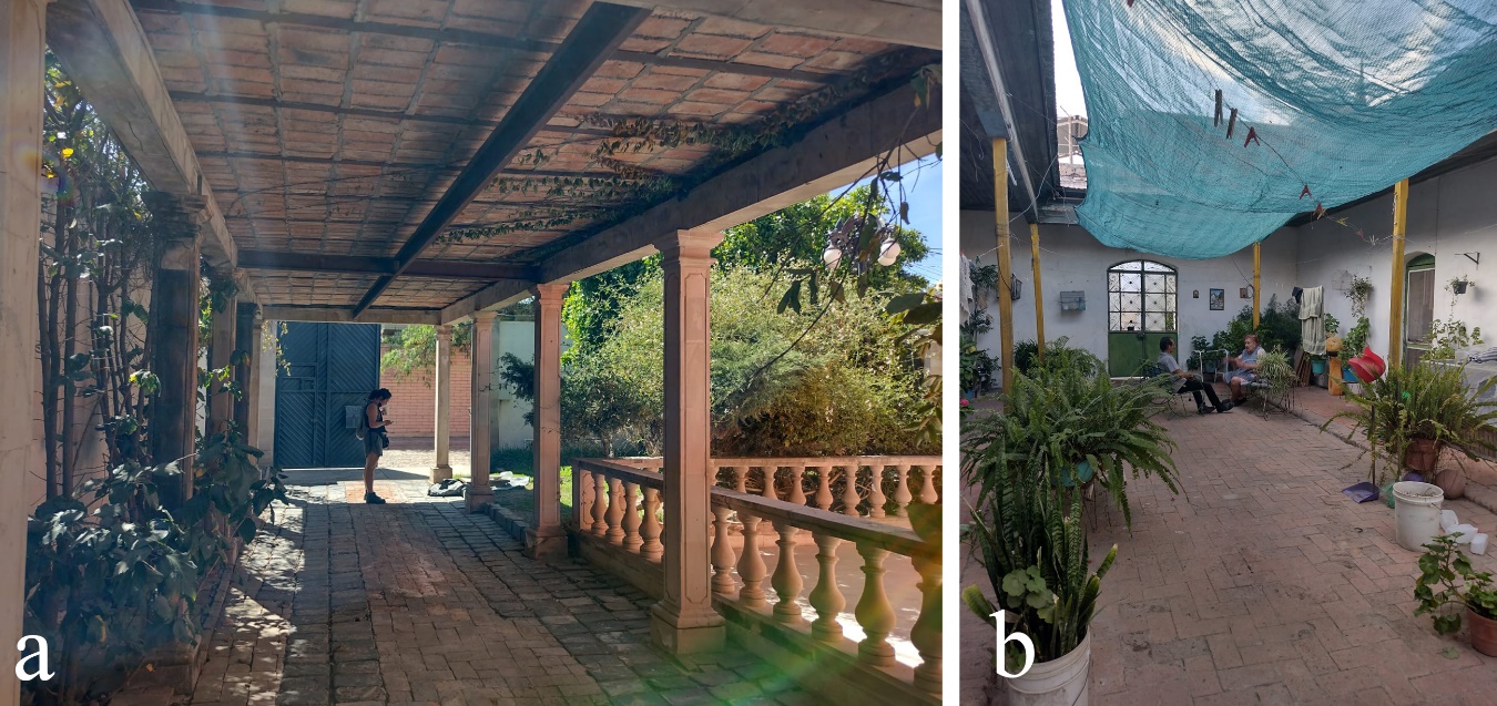 son los vestigios que corresponden a esta faceta de conformación urbana. En la fotografía marcada con la letra a se muestra un patio frontal, mientras que la b pertenece a un patio central.