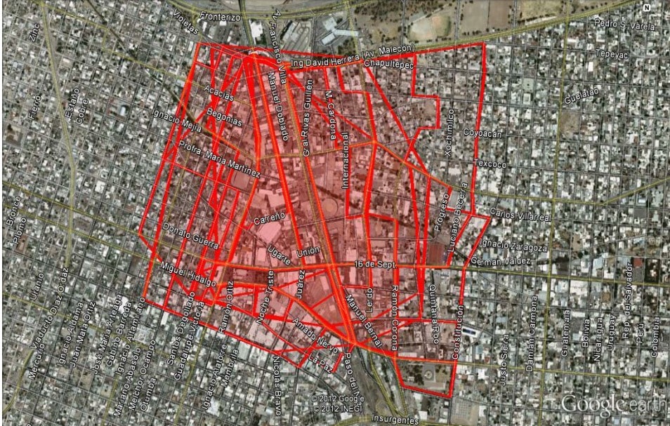 Tal es el caso del área de estudio abordada en este trabajo que se refiere al centro histórico de Ciudad Juárez (CHCJ). Esta zona comprende la parte más antigua de la ciudad y alberga una variedad de espacios y patrimonio que se pueden identificar a través de una serie de estructuras que han sido influenciadas por el pasado y es que “el centro en términos simbólicos, es un lugar donde confluyen prácticas sociales cotidianas y donde se expresan las contradicciones individuales y colectivas de los habitantes de las ciudades” (Hiernaux, 2005, p. 19).