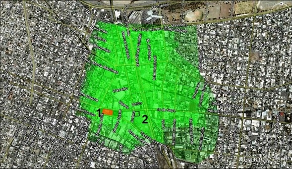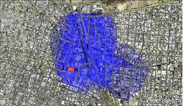 Si bien el área de estudio producto de la sobreposición de polígonos hace referencia a la parte histórica de la ciudad, el llamado "primer cuadro", esta también es concebida como un área donde confluye la gran mayoría del transporte urbano. Por lo tanto, es un área constante de flujo peatonal y vehicular, convirtiéndose en un área de uso frecuente y que, además, concentra la mayor parte de los edificios considerados monumentos históricos o bienes inmuebles de valor cultural.