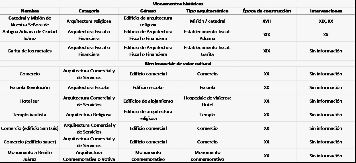 También es pertinente mencionar, que en esa zona de la ciudad se encuentran una variedad de monumentos históricos y bienes inmuebles con valor cultural de acuerdo con el Catálogo Nacional de Monumentos Históricos Inmuebles del Instituto Nacional de Antropología e Historia, que se describen a continuación (ver tabla 1).