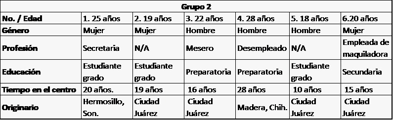 · Grupo 3: Sujetos con más de treinta años habitando en Ciudad Juárez, pero fuera del área de estudio y que por lo menos visiten la misma dos veces por semana.