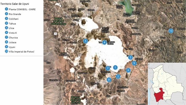 De los tres países que comprenden este triángulo del litio, a diferencia de Chile y Argentina, que son exportadores mundiales de carbonato de litio y en los que predominan los capitales trasnacionales,1 fue en Bolivia donde de manera pionera el Gobierno del Movimiento Al Socialismo Instrumento Político por la Soberanía de los Pueblos (MAS-IPSP) afirmó su intención de mantener control estatal en todas las etapas del proceso de extracción e industrialización que van desde el salar hasta la batería.2 Así, el 1 de abril de 2008 el presidente Evo Morales anunció por decreto el inicio del proyecto de extracción e industrialización del litio en este territorio y la edificación de tres plantas: una para la producción de carbonato de litio,3 situada en el salar de Uyuni; una semindustrial para producir cloruro de potasio situada, en Llipi; y una experimental para fabricar baterías de ion litio (que se encuentra en La Palca en el municipio de Yokalla).