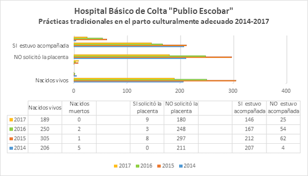 Ahora bien, en el período 2014-2017, según las encuestas que se solicitó al Hospital Público, el parto culturalmente adecuado representó el 60 % del total de partos en el Hospital Básico de Colta. Lo que quiere decir que la política pública de reconocimiento implementada ha sido aceptada de forma parcial.