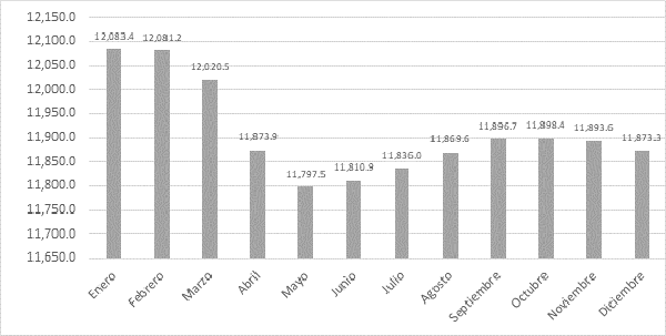 La prohibición de despidos decretada por el Gobierno no logró impedirlos. De hecho, el MTEySS los autorizó. Este fue el caso de la homologación de 1500 despidos en la empresa Techint. Como se aprecia en el gráfico 1, el empleo registrado tuvo una retracción leve en marzo y luego una caída más pronunciada en abril y mayo. A partir de junio se presenta una muy leve recuperación hasta septiembre, luego un estancamiento en octubre y noviembre y una nueva caída leve en diciembre. El año finaliza con un descenso del empleo registrado del 1,74 %.