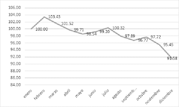 Durante 2020 pudo observarse una caída del nivel salarial medida en términos reales (ver gráfico 3). Si se analizan los datos de la Secretaría de Seguridad Social, la remuneración imponible promedio de los trabajadores estables (Ripte, febrero 2021) deflactada por el índice de precios al consumidor del Indec, puede verificarse esa trayectoria. Tras un leve ascenso en febrero, se produce una caída hasta el mes de mayo, luego cierto estancamiento con altibajos y una nueva caída muy pronunciada en el mes de diciembre. El resultado es una tendencia al descenso de los salarios reales.