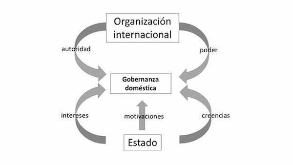 La autoridad y el poder de las organizaciones internacionales les permiten influir en los Estados a partir de la generación de conocimiento, difusión de ideas y creación de pautas de comportamiento estatales para solucionar situaciones que ellas han identificado como problemáticas. Sin embargo, una perspectiva integral de la influencias en las políticas públicas de un Estado debe considerar además lo que ocurre a escala interna (figura 1). Las políticas públicas que forman parte de la gobernanza de un país no solo reciben influencias de las organizaciones internacionales, sino que también son construidas por los intereses, motivaciones y creencias de los responsables políticos (Sabatier, 1988; Sabatier y Jenkins-Smith, 1999; Weyland, 2005, 2006).