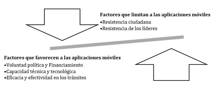 Pese a que existen 3 factores que favorecen el uso de las apps herramientas para la sostenibilidad urbana, como son voluntad política y financiamiento, capacidad técnica y eficacia y efectividad en los trámites municipales, hay 2 factores que frenan su uso e implementación y se encuentran relacionados con la resistencia de los líderes barriales y de la ciudadanía en general, que están vinculados especialmente al conocimiento y familiarización con las TIC, ver Gráfico 2 (Cuesta, 2020).