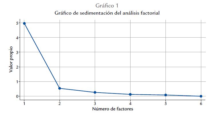 En el gráfico 1 los resultados del análisis factorial evidencian la existencia de un factor subyacente entre las seis dimensiones que componen la calidad de la democracia. Este gráfico de sedimentación muestra que el factor 1 explica la mayor parte de la variabilidad total de los datos de las 6 dimensiones y que los otros factores detallan una variabilidad muy pequeña con valores inferiores a 1. Esto se corrobora con la tabla 2, en la que también se aprecia que este factor latente contribuye a explicar el 80,2 % de la varianza de las seis dimensiones que componen la calidad democrática. Por tanto, este factor subyacente tiene una capacidad elevada para explicar la variación de los datos de las seis dimensiones de la calidad de la democracia y puede ser usado para obtener un índice de calidad democrática.