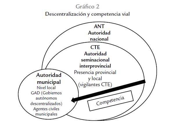 Los niveles de Gobierno tienen ámbitos de competencia y funciones distintas que bien pudieran generar duplicidad de funciones, disputas y confusiones entre actores. Esto se debe a que muchos GAD no recibieron en 2011 el total de sus competencias, ya que no todos tenían las fortalezas y capacidades institucionales para asumir dicha responsabilidad. La transferencia de la CTE a los GAD municipales se ejecutaría de acuerdo con las fortalezas de los municipios, en tres modelos de gestión: 1) modelo A, conformado por siete municipios. En un primer grupo estaban Quito y Guayaquil, con un plazo de implementación de 1 año; por el otro, Ibarra, Ambato, Loja y Manta, con un plazo de 2 años; 2) modelo B, los municipios de Rumiñahui, Riobamba, Machala, Milagro, Babahoyo, Quevedo, Portoviejo, Santo Domingo y Mejía tenían todas las facultades, excepto el control operativo del tránsito; 3) modelo C, con 204 municipios que tenían todas las facultades excepto el control operativo y matriculación vehicular del tránsito hasta que se pudieran fortalecer de manera individual o mancomunada (Secretaría Nacional de Planificación [SNP], 2011).