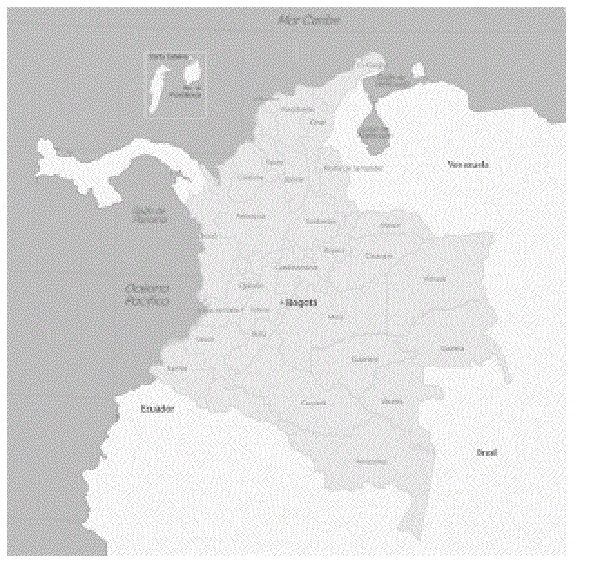 La figura 1 determina los departamentos en Colombia que, como se ha venido insistiendo, son los sujetos activos del impuesto de licores en el país.