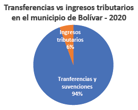 El municipio de Bolívar tiene una economía principalmente agraria y eso deriva en que la dinámica económica esté asociada a la tenencia y propiedad de la tierra. Además, la actividad comercial, industrial y de servicios es mayormente informal y eso dificulta cualquier programa de fiscalización sobre impuestos como el ICA. Pero no es una situación excepcional, pues, en últimas, el municipio de Bolívar tiene el mismo problema de la mayoría de pequeños municipios colombianos, esto es, una incipiente estructura fiscal y una dependencia de los recursos provenientes del nivel central.