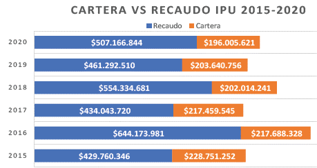 De los datos aportados por la Secretaría de Hacienda Municipal sobre el IPU para 2015 y 2020, no se advierte que exista continuidad en el recaudo y esto podía explicarse en falta de cultura de pago. La administración municipal de Bolívar da cuenta de una alta cartera por concepto de IPU y esto ha obligado a realizar recurrentes amnistías.