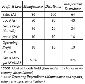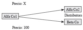 En este caso específico, entonces, podemos ver que si utilizamos el precio de Alfa Co1 a Alfa Co2 debería ser de 100; sin embargo, es claro que el distribuidor puede entrar en costos logísticos, de aseguramiento o de customs, por lo que debe haber un reajuste. Supongamos que el precio de la transacción es de 100, pero que hay costos en logística de 5, en aseguramiento de 2, y en customs de 10, sumando en total 17 en costos, por lo que entonces el precio de transferencia ha de ser 117 y no 100.