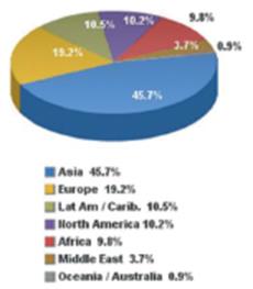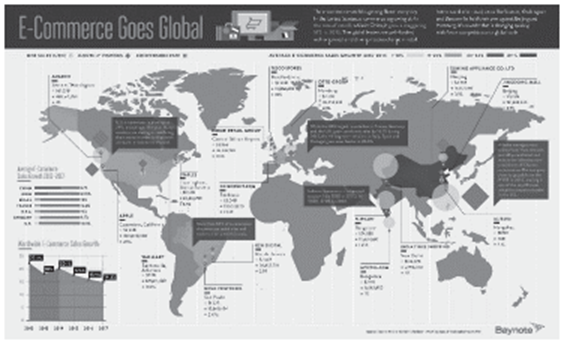 De igual forma, enseña la proyección del crecimiento promedio de las ventas a través del comercio electrónico para el quinquenio 2012-2017, mostrando un crecimiento promedio del 57% de las ventas en China y un 29,5% en India, lo cual resulta concordante con el nivel de penetración de internet registrado en Asia, que, para el año 2014, asciende al 45,7% (Internet World Stats, 2014).