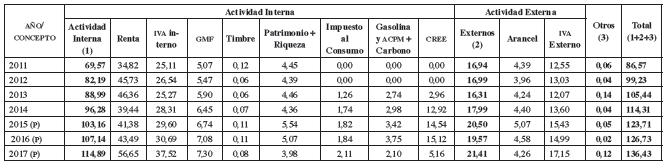 La DIAN, entre los años 2011-2016, ha presentado los siguientes resultados en términos de ingresos por administración de impuestos internos y externos (véase cuadro 1).