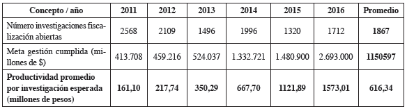 Así las cosas, en el siguiente cuadro, se presenta el número de investigaciones de fiscalización abiertas por la DIAN9 a nivel nacional, entre los años 2010-2016: