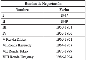 Ahora bien, desde el año 1947 hasta 1994 se llevaron a cabo 8 rondas de negociación con total éxito, las cuales se pueden contemplar en el siguiente cuadro: