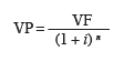 El primero parte de que se conoce la tasa de mercado, que en este caso es del 10% y tiene un valor de $2.000.000 que se financiará a dos años. Se necesita hallar el valor equivalente de los $2.000.000 si se recaudaran en el periodo en el que se pactó la venta. Para este caso debere recurrir a la fórmula de valor presente, que es: