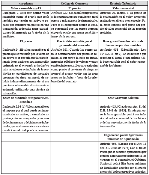 However, it is only until 2009, through Law 1314, that the convergence of national accounting standards with those of international order was established; This mutation resulted in accounting not being based on rules but on principles, which meant that the financial information left aside the formality that determined the tax system, for the economic reality, fulfilling the initial purpose of its adoption. It is these underlying principles and criteria of international standards that constitute the necessary and unavoidable instrument for the understanding of IFRS; precisely, within the framework of these norms and the transformation that they imply, the measurement at fair value is decisive, a concept that substitutes the indeterminacy of commercial value as a taxable base in the tax statute.
