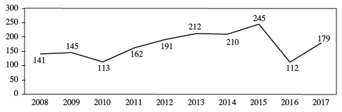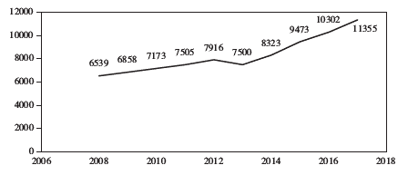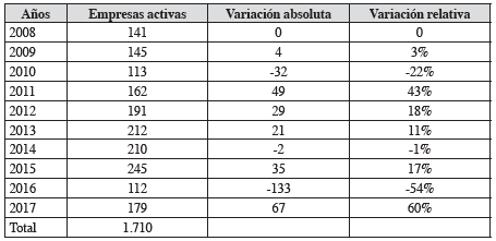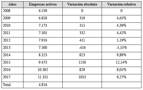Como se ha precisado en los párrafos anteriores, el Municipio de Rionegro en el periodo objeto de estudio ha presentado un desarrollo industrial importante y cambios en su estructura tributaria, lo cual incide en diferentes aspectos, tales como el punto estratégico de ubicación; por tal razón, en la siguiente tabla se muestra un panorama del número de empresas nuevas que han abierto establecimiento de comercio desde el año 2008 al 2017.