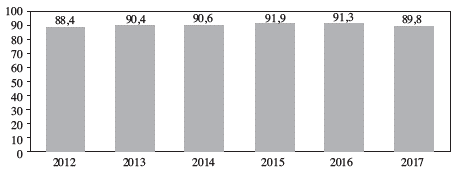 Para el último año objeto de estudio 2017, tuvo un crecimiento constante, manteniendo el porcentaje de crecimiento del año anterior en los ingresos tributarios, por concepto de Impuesto de Industria y Comercio; en este contexto se hace importante realizar un análisis de los ingresos suprimiendo el efecto de la inflación, para así determinar cuál sería su ingreso real sin tener en cuenta los efectos del mercado.