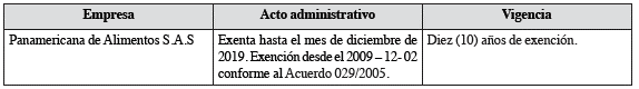 Según estudio realizado de las empresas asentadas en el municipio, el 0,000002% cumple con los requisitos para ser exoneradas del impuesto, ya que de 4.816 empresas registradas en los últimos 10 años, solo Panamericana de Alimentos S.A.S logró acceder a la exención; inicialmente por 5 años y posteriormente prorrogado conforme al Acuerdo 029 de 2015. Global Rotor s.A.s solicitó pero no cumplía con los requisitos; se evidencia entonces el bajo porcentaje de las empresas que acceden a estos beneficios como consecuencia de la rigurosidad de los requisitos para lograrlos.