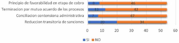Como lo afirma Peña Sánchez (2017), el derecho a través del principio de favorabilidad desarrollado por la Corte Constitucional, acogido e introducido tímidamente por el legislativo y férreamente resistido por el Consejo de Estado, debe ocuparse de un orden más justo en materia. Lo anterior, teniendo presente que el 42 % de estas personas responsables de impuestos nacionales consultadas cuentan con un profesional contador como asesor, pero no todos documentan sobre las oportunidades que ofrece el Estado para normalizar los pagos de impuestos o beneficios tributarios a los que se puedan acoger.