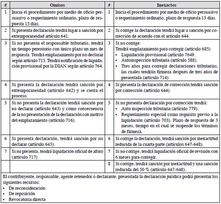 Por otro lado, y para poder comprender la aplicabilidad de este beneficio, se presenta en la tabla 2 el control procedimental que realiza la DIAN para los omisos e inexactos, donde su presentación es de manera secuencial de arriba hacia abajo.