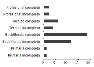 La Figura 1 evidencia la existencia de un capital cultural institucionalizado en la muestra poblacional estudiada. Para Pierre Bourdieu "el diploma escolar permite además de comparar a sus titulares e incluso intercambiarlos, establecer tasas de convertibilidad entre el capital cultural y el capital económico, garantizando el valor en dinero de determinado capital cultural" (1980, 17), es decir: el poseedor de dicho título fija un valor con relación al capital cultural, de ahí que las personas que tienen un grado de escolaridad superior tendrán, por lo general, mayores oportunidades de desarrollo económico que aquellas que cuentan con uno menor.