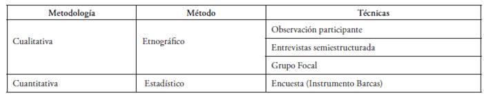 La investigación realizada asumió un pluralismo metodológico tomando como referencia principal para su desarrollo al método etnográfico. Como es sabido, esta perspectiva de investigación cualitativa procura, en líneas generales, la interpretación de la sociedad a través de la observación de fenómenos socioculturales, conduciendo el análisis del modo de vida de un determinado grupo de individuos a través de la observación directa y la descripción sistematizada de lo que la gente hace, la interacción entre sí, la descripción de sus valores, creencias y motivaciones (Álvarez-Gayou 2003, 57) y se consideró pertinente, por lo mismo, emplear este método en el proceso de investigación, dado que el concepto del capital social, como construcción siempre histórica, posibilita un intercambio simbólico al interior de las relaciones de confianza, reciprocidad y solidaridad que se establecen entre los sujetos de investigación.