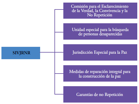 En este orden de ideas, dentro del acuerdo se contempló la creación de un Sistema Integral de Verdad, Justicia, Reparación y No Repetición -en adelante, SIVJRNR-, que se conformó de la manera como se muestra en la figura 1.