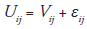 donde Uij es la utilidad que le reporta al individuo i, j es la alternativa contenida en un conjunto de elección, Vij es la componente sistemática u observable de la utilidad y εij es un componente aleatorio Gumbel indepen diente e idénticamente distribuido que recoge todo aquello que influye en la decisión individual, pero que no puede ser observado por el investigador (Manski 1977). Ello también puede ser escrito como: