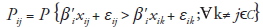 La condición de que cualquier individuo i prefiera la opción j a cualquier otra alternativa k, ambas pertenecientes al conjunto de elección C, puede ser expresada como la probabilidad P, de que la utilidad asociada a la alternativa j exceda la utilidad asociada a cualquier otra alternativa. Formalmente,