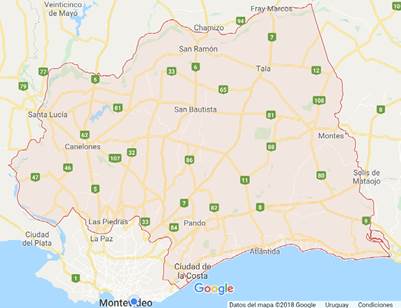 El departamento de Canelones (Fig. 3), está situado al sur del territorio uruguayo, posee 520.187 habitantes (253.124 hombres y 297.063 mujeres), concentrando la mayor población del país después de Montevideo (INE, 2011). Esta zona se caracteriza por el predominio de la horticultura, la fruticultura y la vitivinicultura (Achkar et al., 2016).