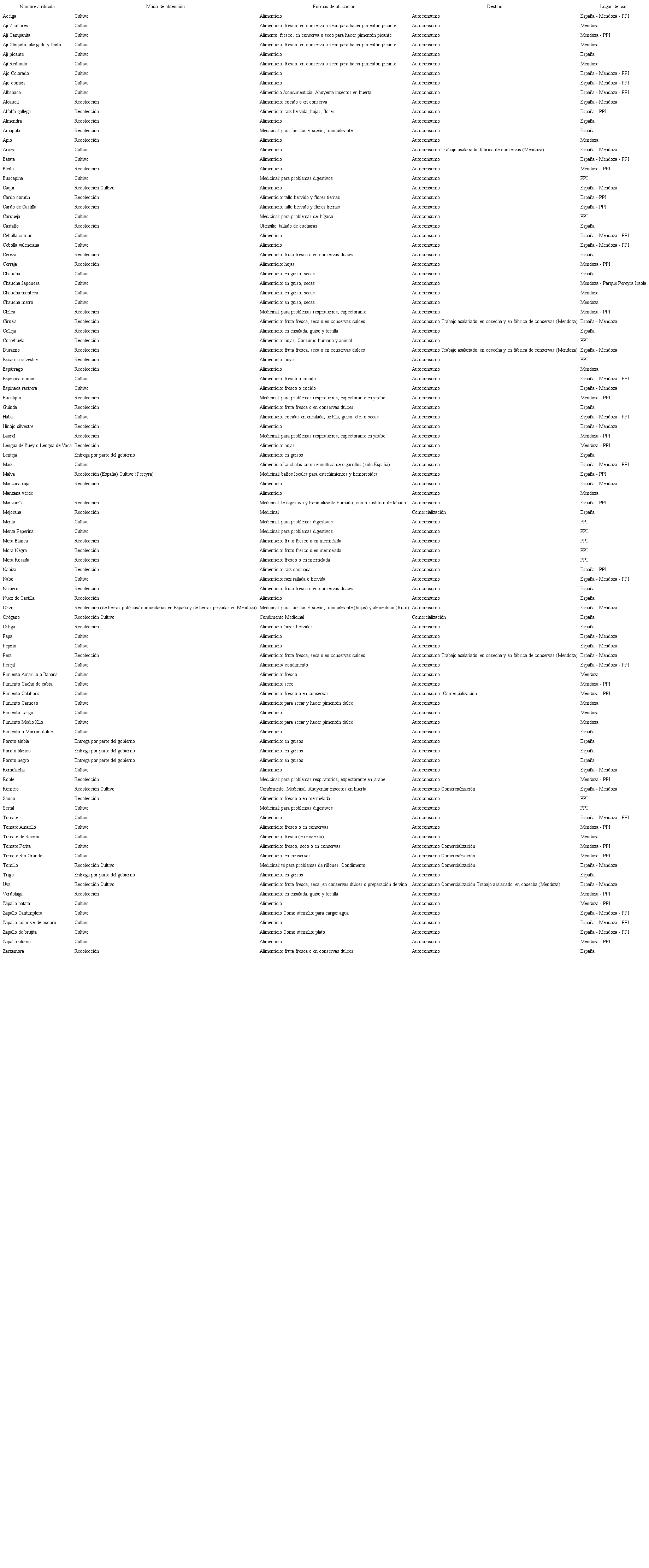 La Tabla 1 presenta los distintos taxones relevados según las estrategias metodológicas empleadas. Mediante entrevistas y observación (sincrónicas) se registraron 98 taxones, por medio de la estrategia biográfica se registraron 99 taxones tanto presentes como “evocados”, los cuales identificados taxonómicamente sobre la base de la descripción brindada por la interlocutora a partir de diversos estímulos “visuales” (fotografías, muestras, material de herbario), y “narrativos” (descripciones en distinto tipo de literatura). De este modo, se puede observar la incidencia de la experiencia personal en el incremento del total de los saberes botánicos locales teniendo en cuenta que hay 38 taxones que fueron registrados mediante los dos tipos de abordaje (Fig. 2). Los 159 taxones registrados incluyen especies, subespecies o variedades botánicas, reconocidos como diferentes por los pobladores locales (Fig. 3). La gran mayoría de las plantas relevadas se utilizan con fines alimentarios; no obstante, se incluyeron también otras con distintos usos (medicinal, artesanal) (Fig. 4), dado que forman parte del repertorio de taxones presentes en los huertos.