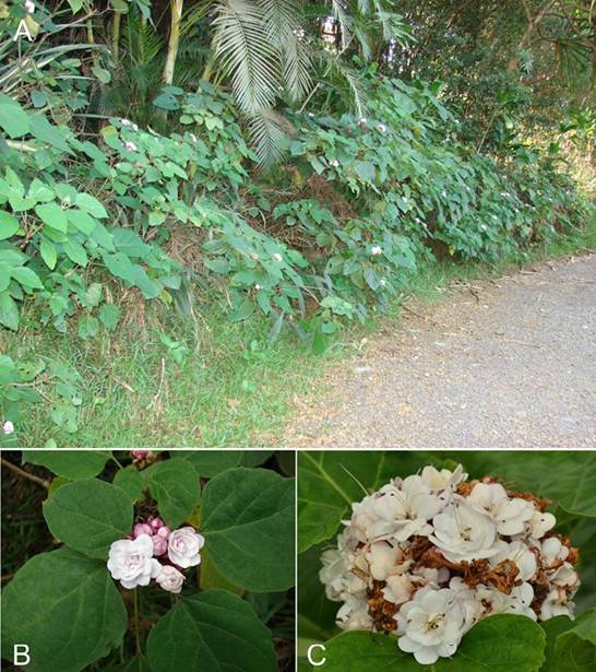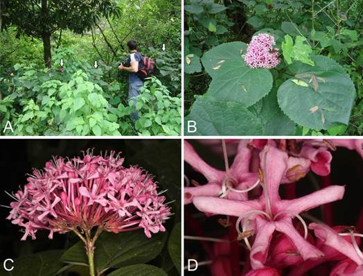 Clerodendrum chinense(Osbeck) Mabb., The Plant-Book: A Portable Dictionary of the Higher Plants 707. 1989. Fig. 2A-C (Fotos fuera del área de estudio a modo ilustrativo).