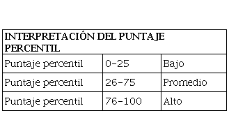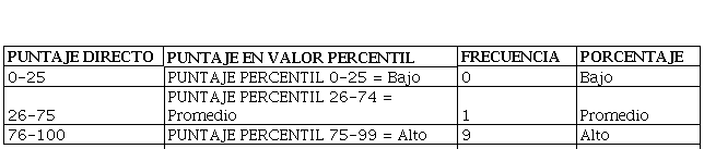 Para realizar la aplicación del test, se procedió a determinar la muestra de estudio que constó de 10 personas en donde se correlaciona la siguiente tabla sobre la escala percentil que se describe a continuación.
