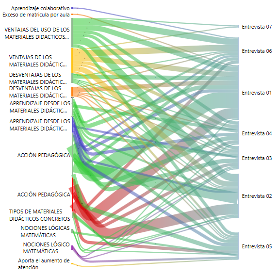 Abstract: The present study deals with the specific didactic materials to favor the logical mathematical notions in the boys and girls of initial education. Its objective was to understand from the experiences of the teachers the use of the concrete didactic materials for the promotion of the logical mathematical notions of the children of the boys and girls from 4 to 5 years of the C11a circuit, of 24 de Mayo canton of Manabí Province, in Ecuador. It was based on a qualitative approach, interpretive paradigm, descriptive type, grounded theory method of Strauss and Corbin (2002). Another of the methods to be used was the phenomenological hermeneutic. The technique was the in-depth interview and the instrument was the interview guide. Applied to the informant subjects, teachers of the C11a circuit, of 24 de Mayo canton of Manabí Province, in Ecuador. For the results analysis process was used the Atlas ti 22 software, in which a process of coding, axial and selective categorization was carried out. It was represented by semantic networks. Likewise, the Sankey diagram was applied in order to present the level of co-occurrence between the categories and the codes for the purposes of the emerging epistemic construction. Obtaining as a conclusion that from the experiences of the teachers the use of concrete didactic material strengthens the logical mathematical notions, the physical, motor, social and affective development of the children, from the performance of learning by discovery, experiential, collaborative and significant. But, without a doubt, concrete didactic materials must be guided and controlled by the teacher because in circumstances of manipulation by children it can lead to an accident, due to the size of some of these.